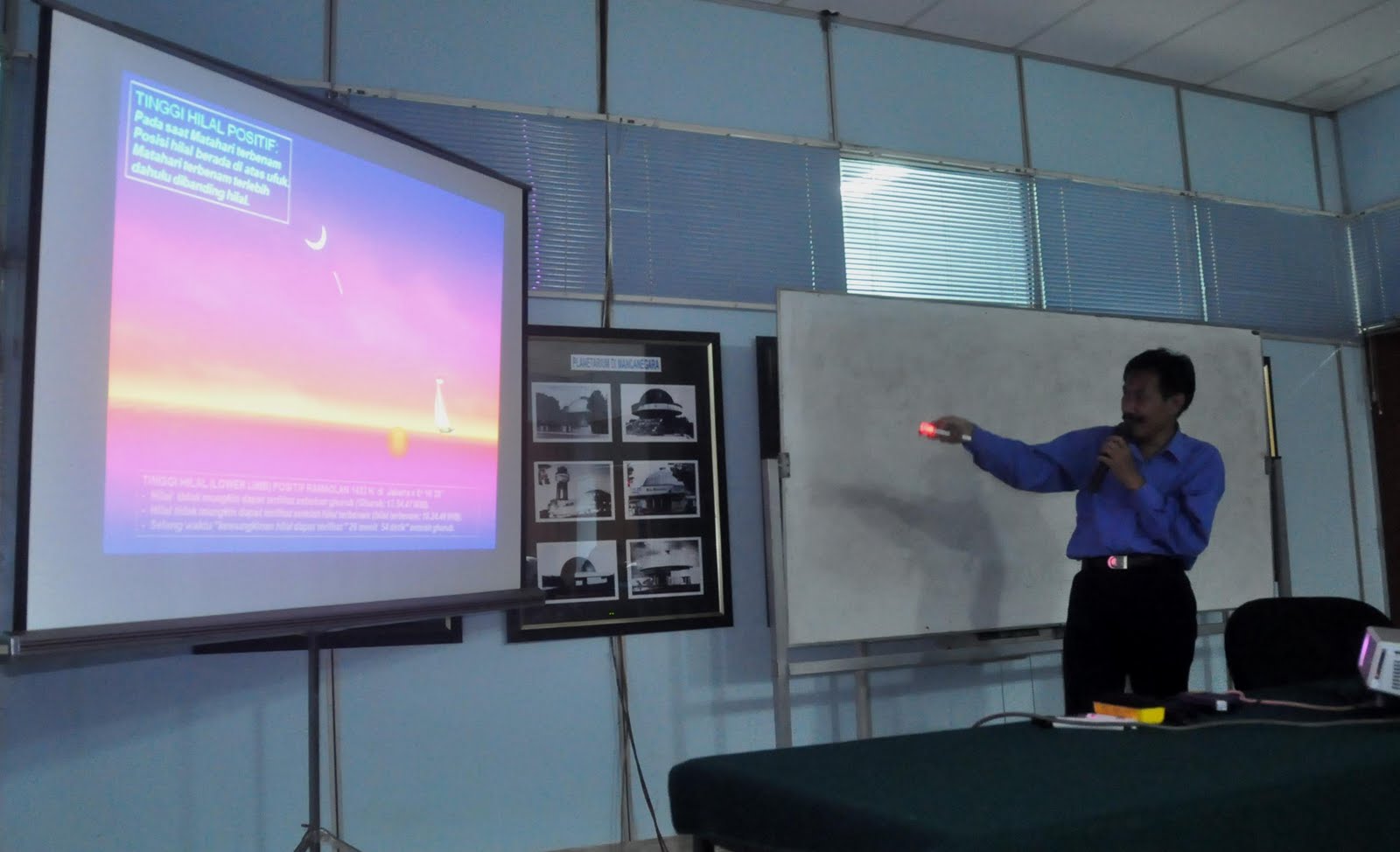 Gambar 1. Pak Cecep Nurwendaya sedang memaparkan materi ‘ Hisab Rukyat’. |